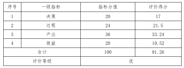 根据《赫山区2022年失业保险基金项目绩效评价指标体系及评分表》,从立项、过程、产出、效益等四方面进行综合评价,赫山区2022年失业保险基金项目绩效评价得分为91.26分,评定等级为“优”。