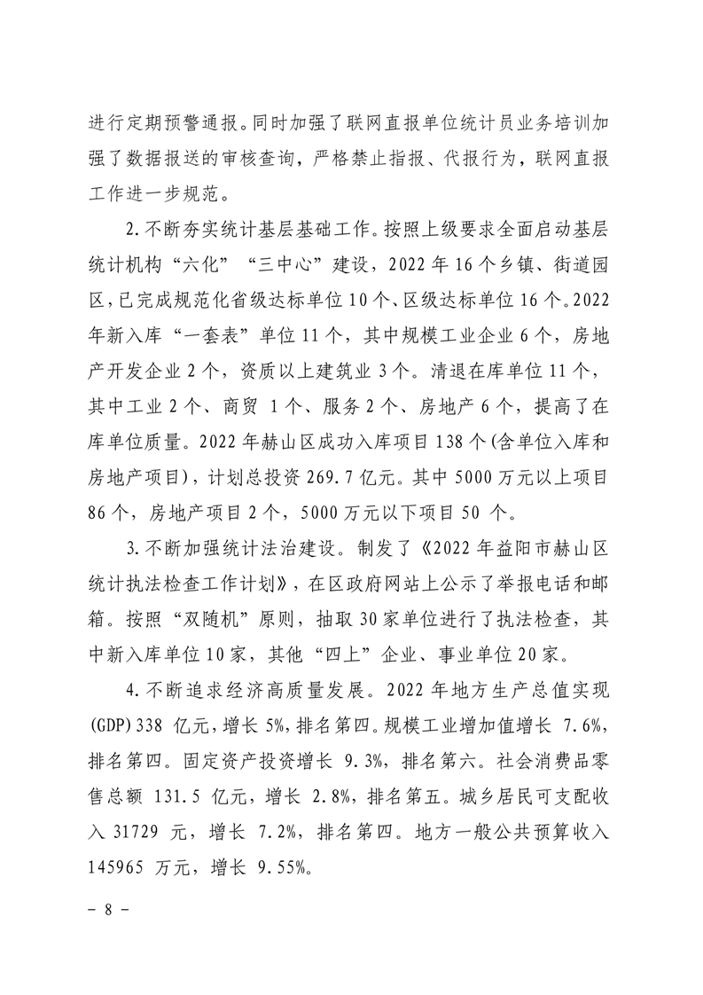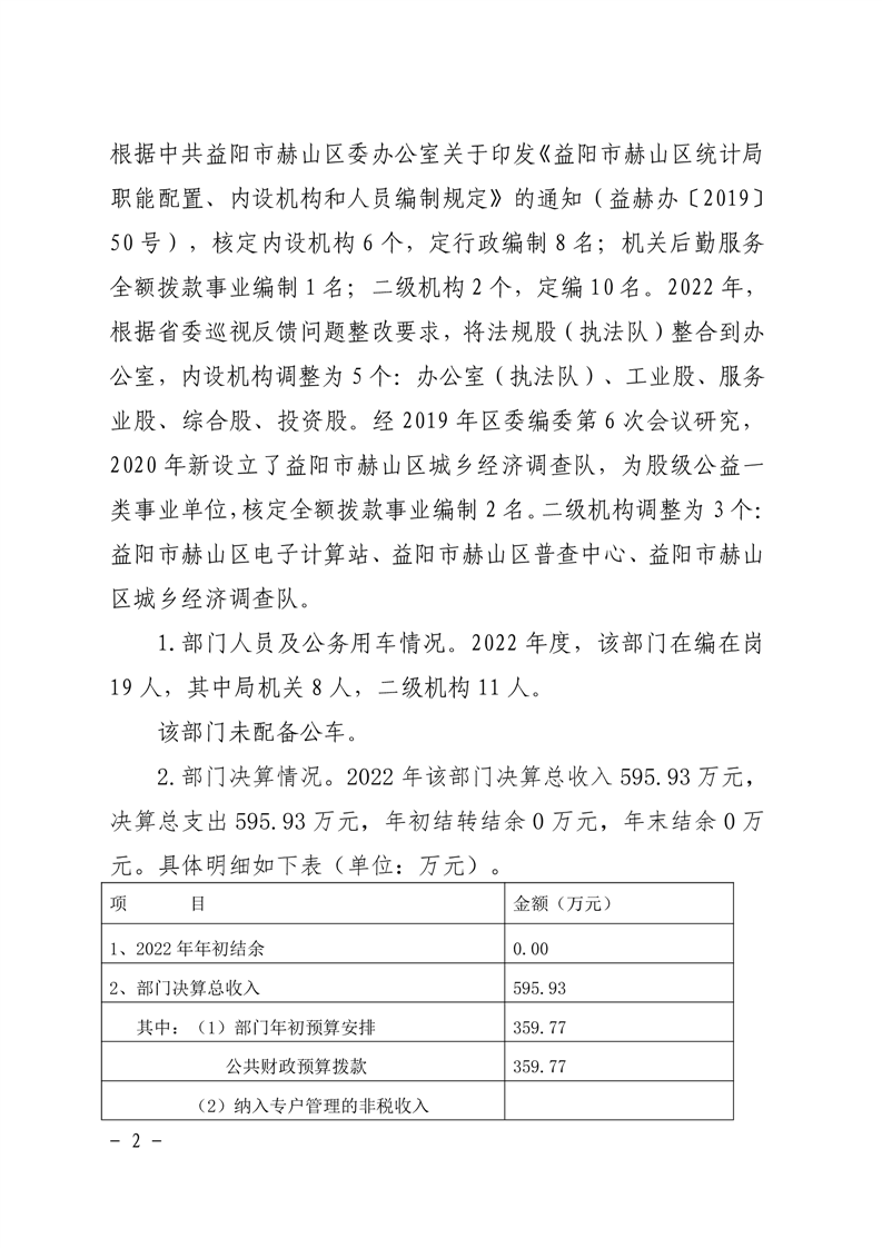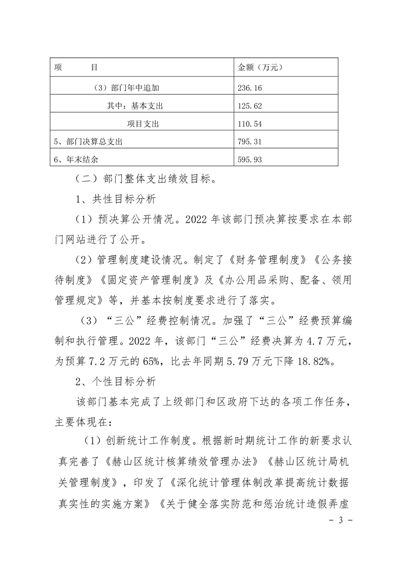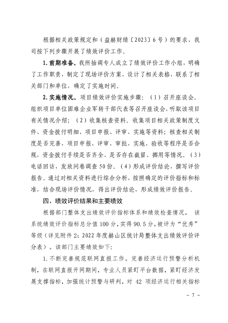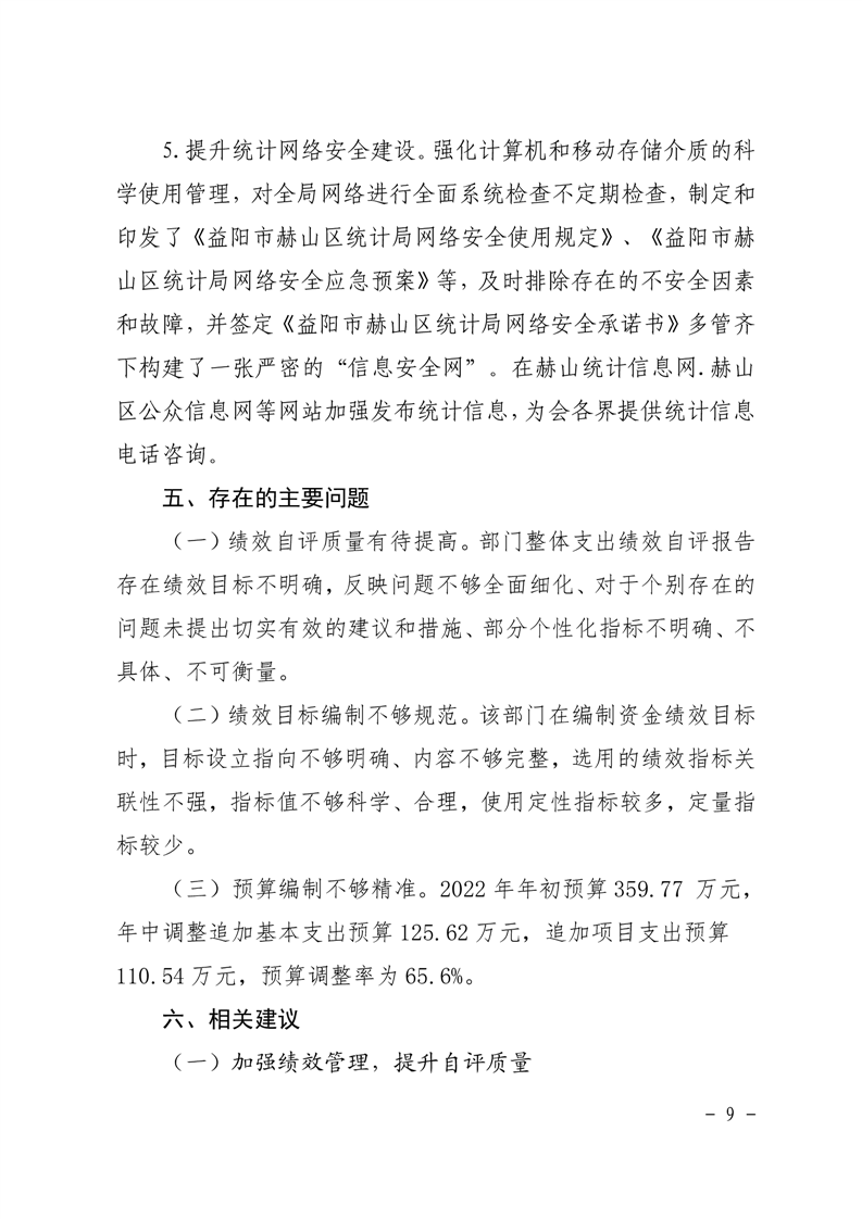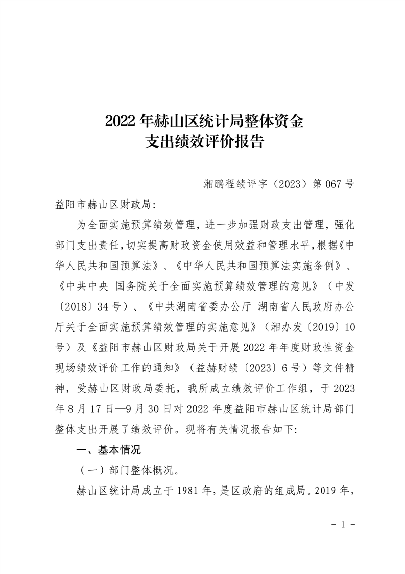 2022年赫山区统计局整体资金支出绩效评价报告