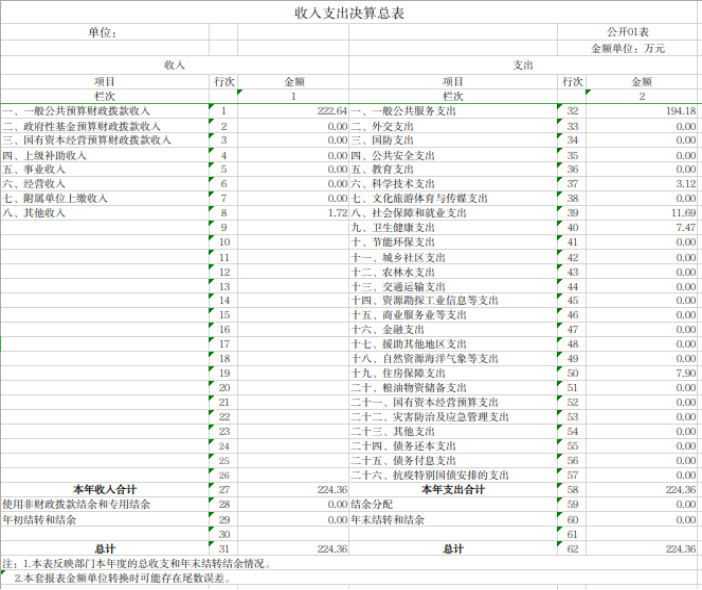 2023年度收、支总计224.36万元。与上年相比,增加56.4万元,增长33.58%,主要是因为2022年部分支出后移至2023年支出。