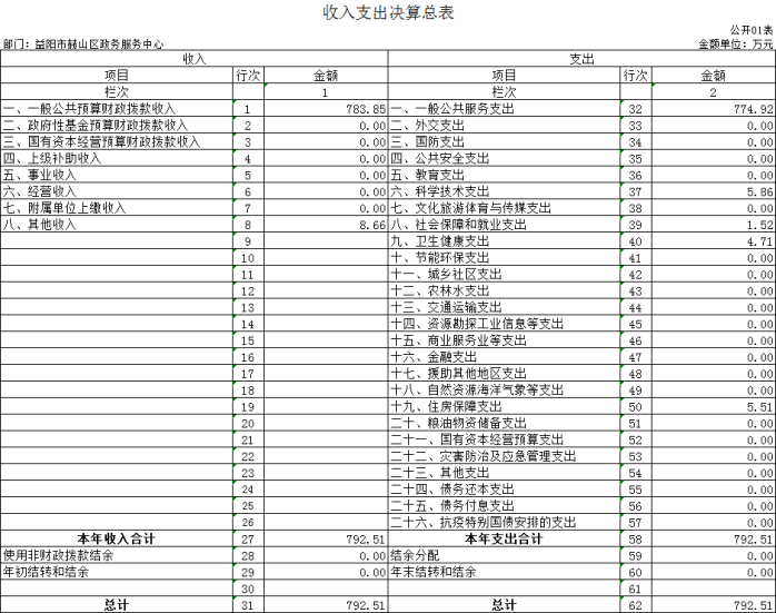 2022年度收入总计792.51万元。与上年相比,减少302.21万元,减少27.60%。支出792.51万元,与上年相比,减少302.21万元,减少27.60%。收入和支出减少的主要原因是政务服务中心整体搬迁及“互联网+政务服务”一体化平台建设等项目已在上年度结束,本年度的收入和支出为大厅日常运维费用。