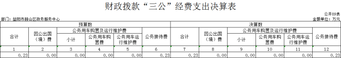 “三公”经费财政拨款支出预算为0.23万元,支出决算为0.23万元,完成预算的100%,其中: