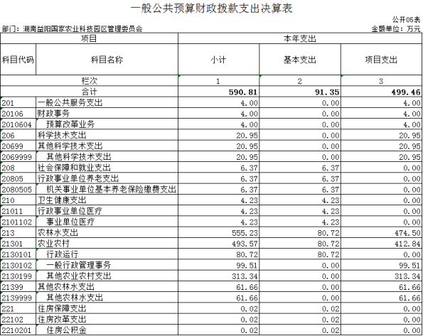 第二部分:益阳国家农业科技园区管理委员会2022年度部门决算表