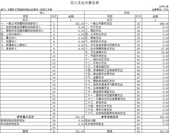 2022年度收、支总计321.03万元。与上年相比,增加32.69万元,增长11.34%,主要是因为本年度执行中单位人数变动及单位事权调整。