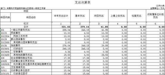 (二)决算单位构成。中国共产党益阳市赫山区委统一战线工作部只有本级,没有二级机构,因此纳入部门决算的只包括机关本级。