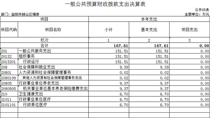 2022年度 中共益阳市赫山区 区委机构编制委员会办公室部门决算