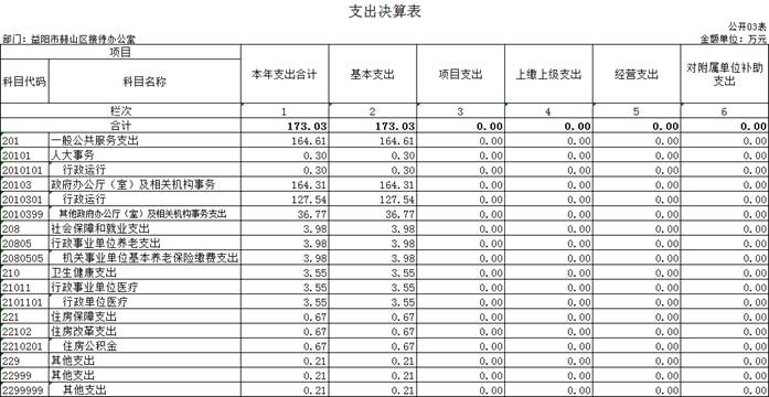 2022年度支出合计173.03万元,其中:基本支出173.03万元,占100%;项目支出0万元,占0%;上缴上级支出0万元,占0%;经营支出0万元,占0%;对附属单位补助支出0万元,占0%。