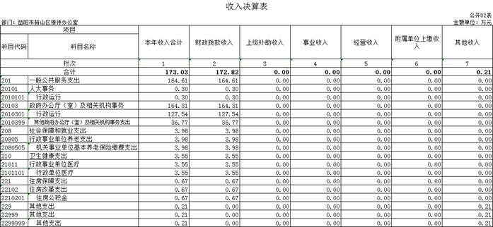 2022年度收、支总计173.03万元。与上年相比,减少16.65万元,减少0.09%,主要是因为控制支出减少不必要的开支。