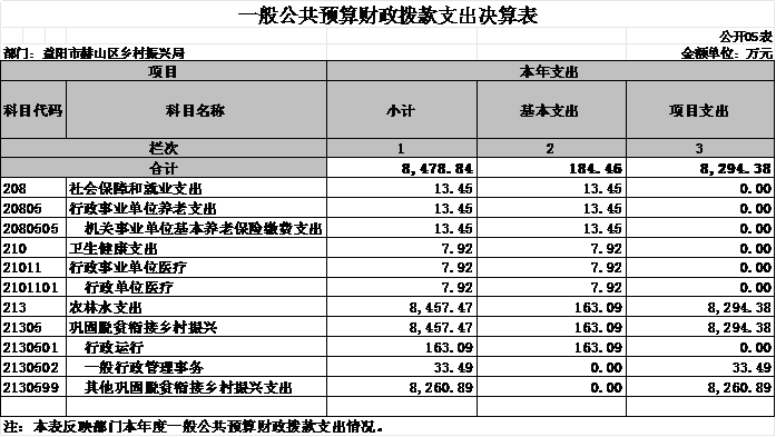 (二)决算单位构成。益阳市赫山区乡村振兴局单位2022年部门决算汇总公开单位构成包括:益阳市赫山区乡村振兴局本级以及二级机构益阳市赫山区乡村振兴局调研指导站(所属二级机构未独立核算)。