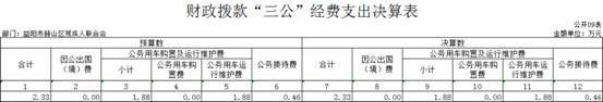 “三公”经费财政拨款支出预算为2.33万元,支出决算为2.33万元,完成预算的100%,其中: