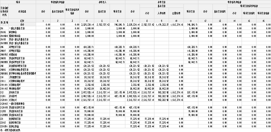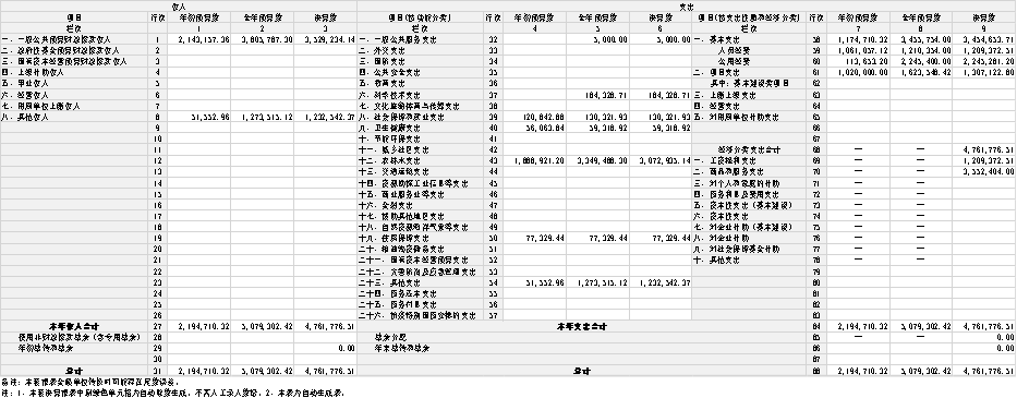 注:1.本表反映部门本年度的总收支和年末结转结余情况。