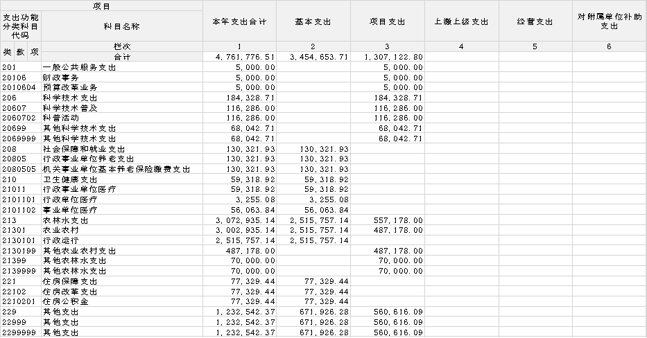 8.农林水支出(类):是指用于农林水事务支出,包括保障机构正常运转、完成日常和特定的工作任务或事业发展目标的支出。