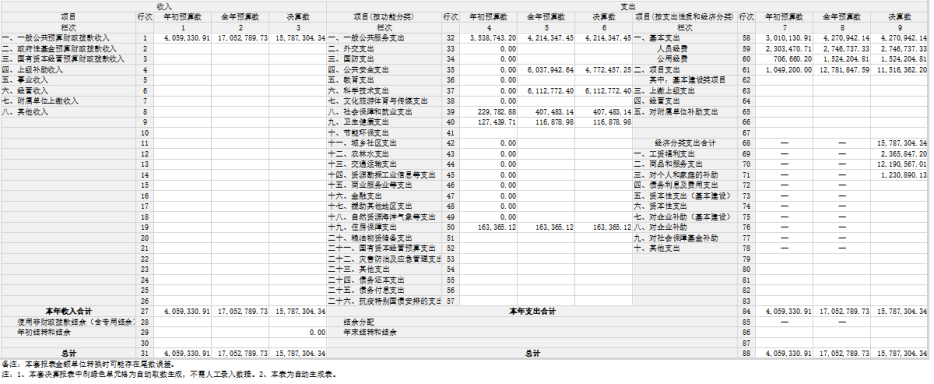 注:1.本表反映部门本年度的总收支和年末结转结余情况。
