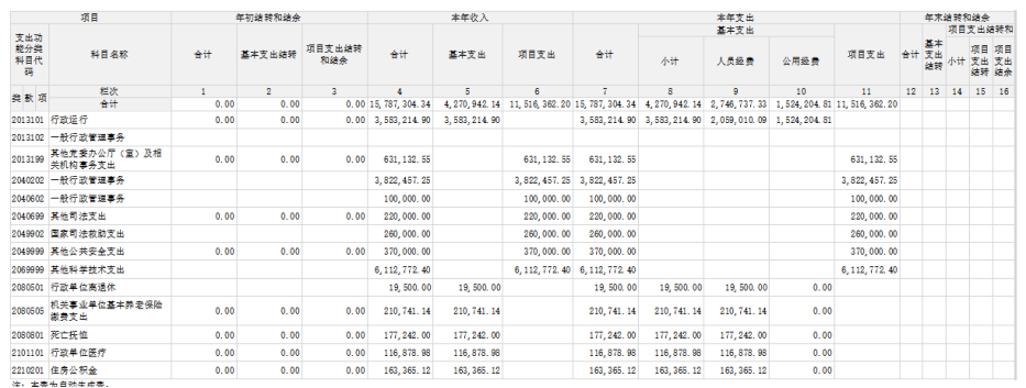注:本表反映部门本年度一般公共预算财政拨款、政府性基金预算财政拨款和国有资本经营预算财政拨款的总收支和年末结转结余情况。