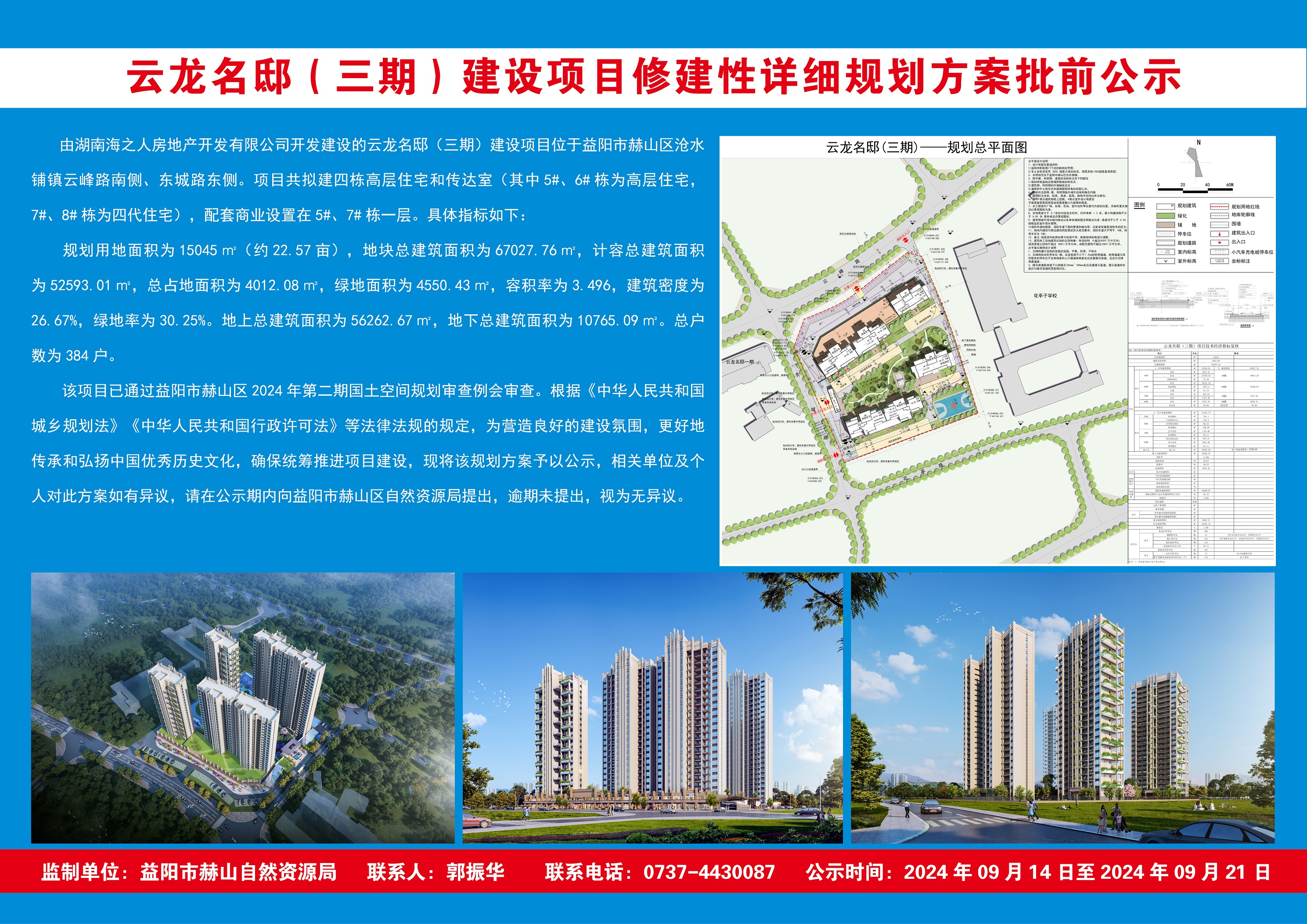 云龙名邸(三期)建设项目修建性详细规划方案批前公示
