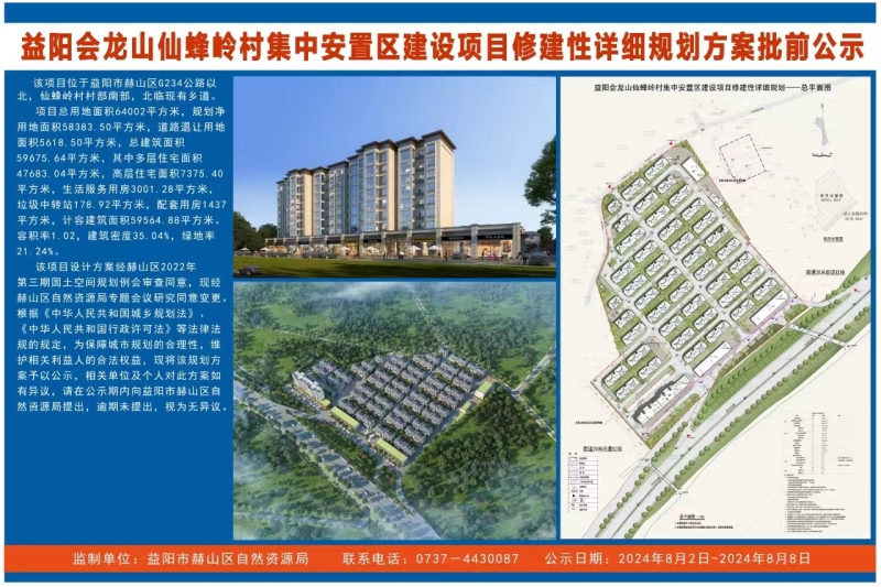 益阳会龙山仙蜂岭村集中安置区建设项目修建性详细规划方案批前公示
