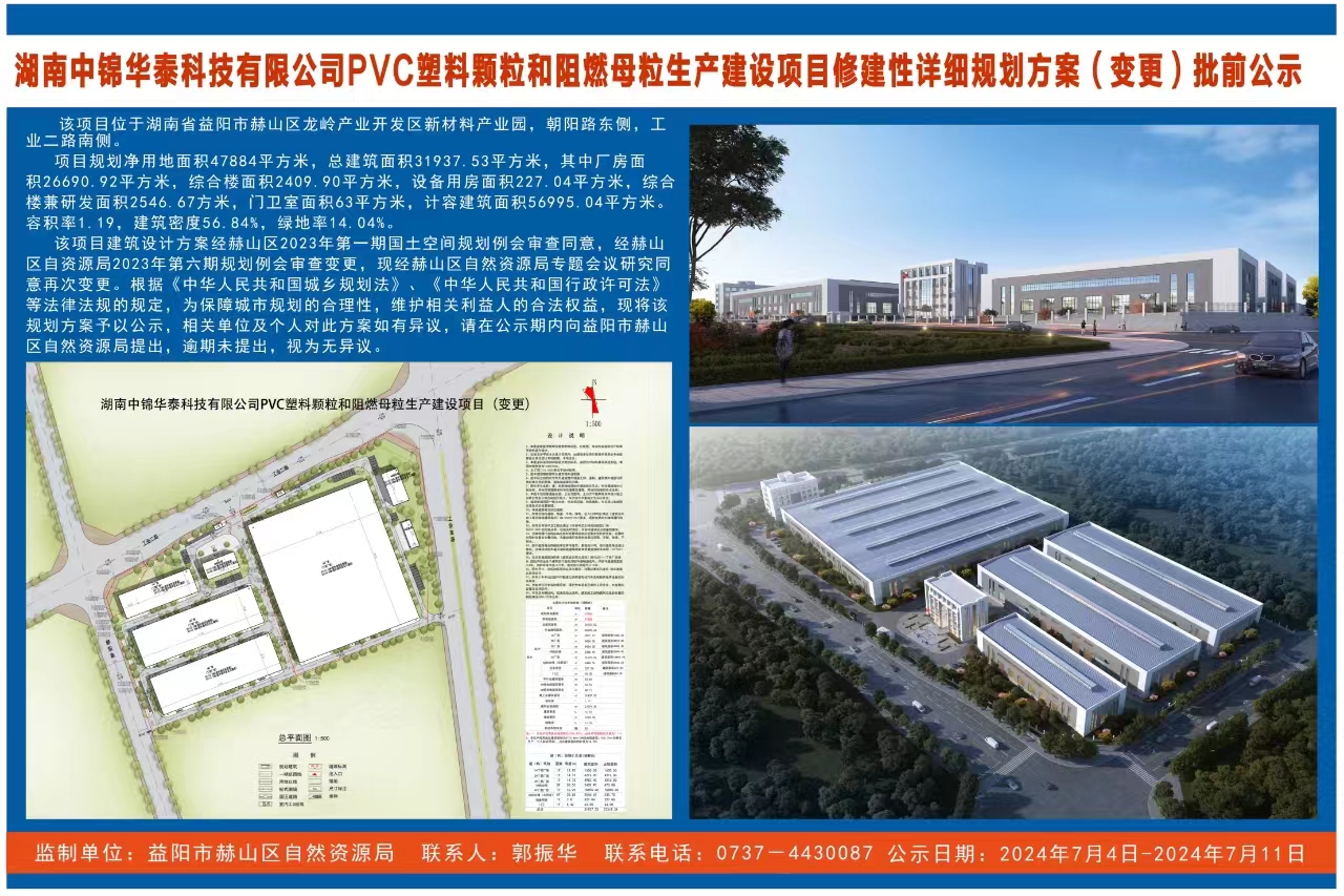 湖南中锦华泰科技有限公司PVC塑料颗粒和阻燃母粒生产建设项目修建性详细规划方案(变更)批前公示