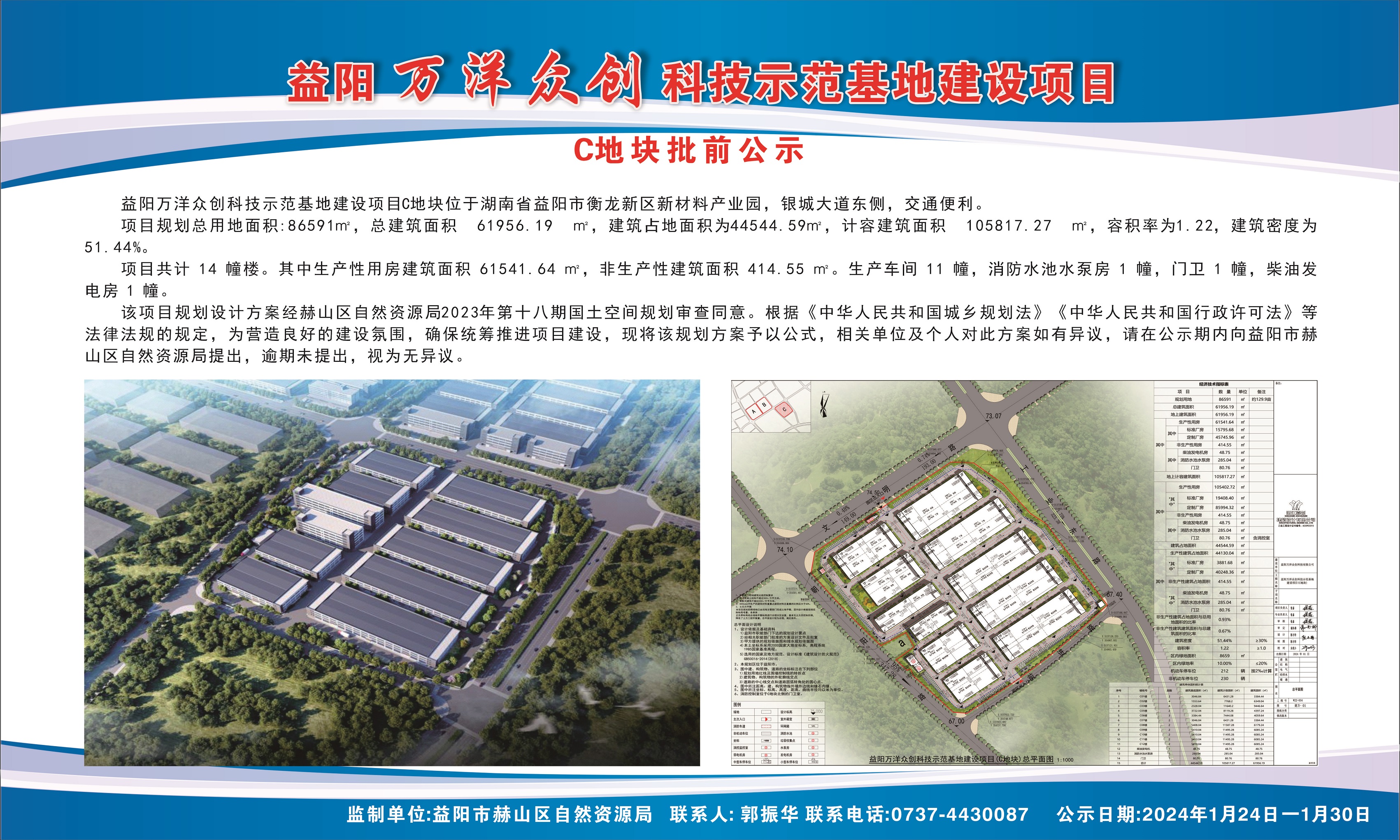 益阳万洋众创科技示范基地建设项目C地块修建性详细规划方案批前公示