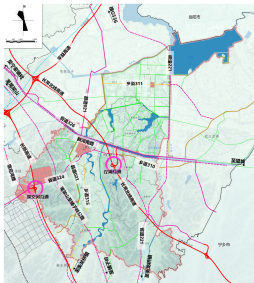 优化交通体系。通过高速公路、城市道路、省道、县乡道等交通规划,实现交通互联互通。规划落实益阳市总规及赫山区“一张底图”交通项目,形成“五纵五横”镇域内部交通联系网。