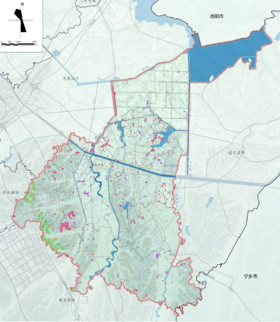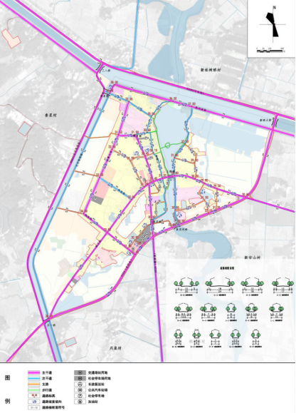 底线管控。划定城市黄线2.73公顷,包括客运站、污水处理厂、自来水厂、液化气站等大型基础设施。划定城市紫线0.36公顷,为省级文物保护单位奎星塔保护范围。划定城市蓝线23.93公顷,为镇政府驻地范围内新河及老河。