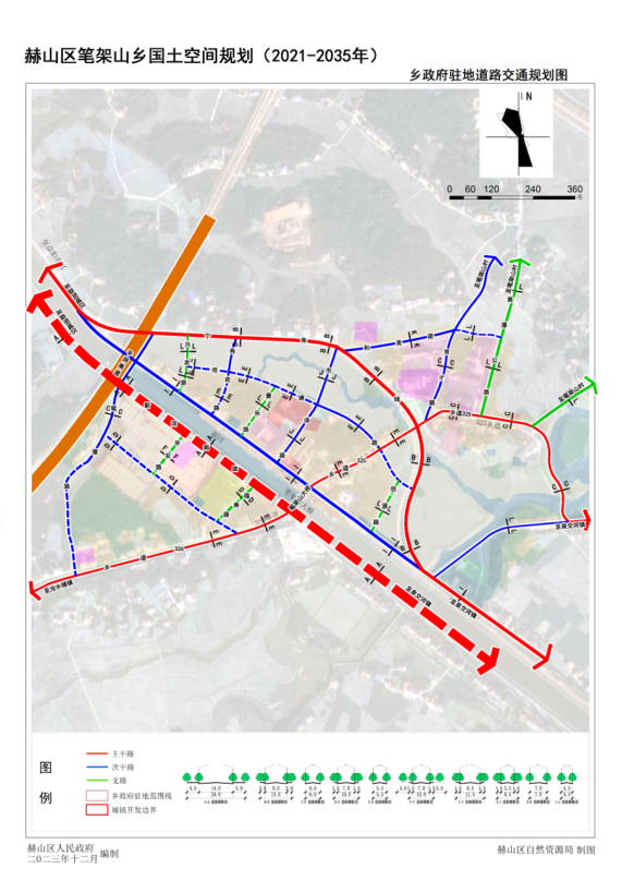 规划笔架山乡形成“五纵五横”的交通主干网。