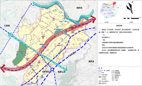 规划以“农业生产空间、建设发展空间、生态保护空间”三空间为基础,主要交通干线为脉络,构建“一心一轴两带多节点”的国土空间格局。