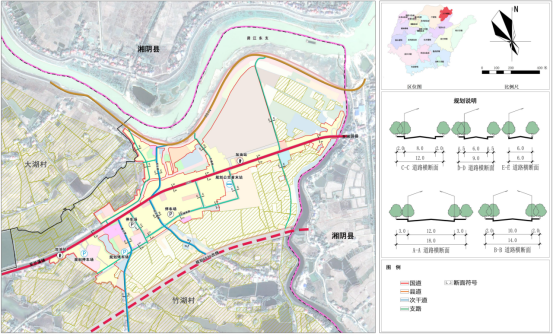 三纵:以承接对外交通为主,为现状G536、规划G536以及金家堤互通连接的平益高速。