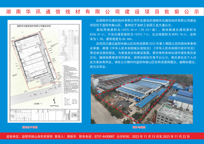 湖南华讯通信线材有限公司建设项目修建性详细规划方案批前公示