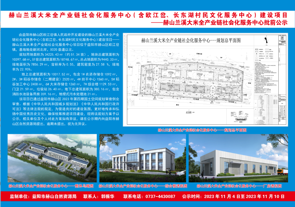 赫山兰溪大米全产业链社会化服务中心(含欧江岔、长东湖村民文化服务中心)建设项目——赫山兰溪大米全产业链社会化服务中心修建性详细规划方案批前公示