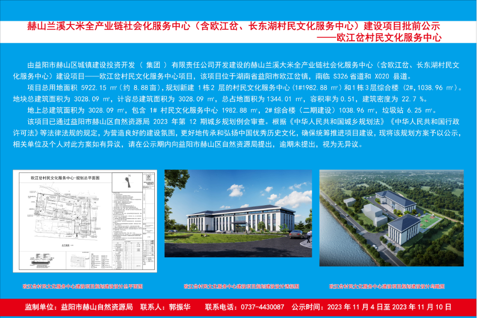 赫山兰溪大米全产业链社会化服务中心(含欧江岔、长东湖村民文化服务中心)建设项目批前公示——欧江岔村民文化服务中心