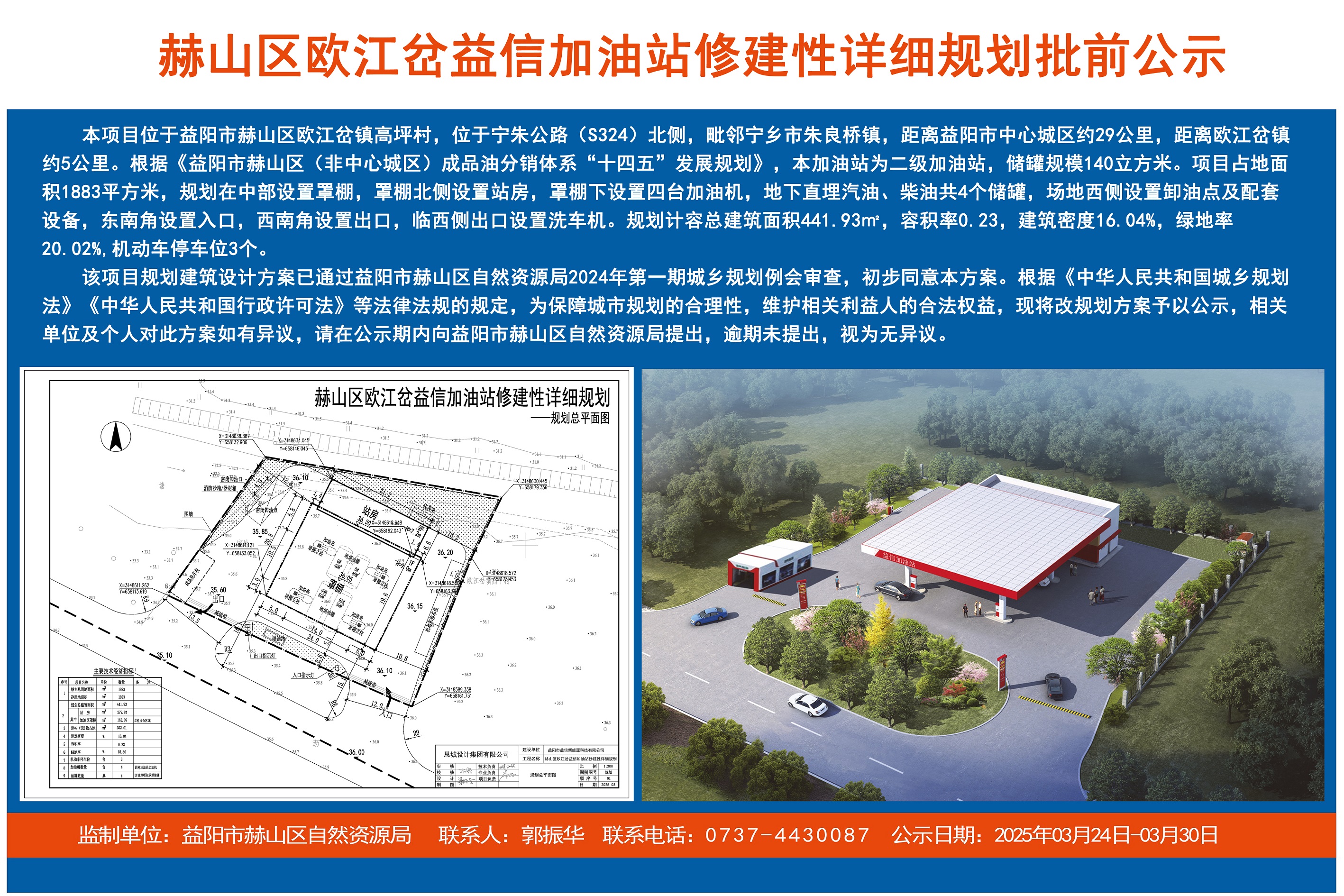 赫山区欧江岔益信加油站修建性详细规划批前公示
