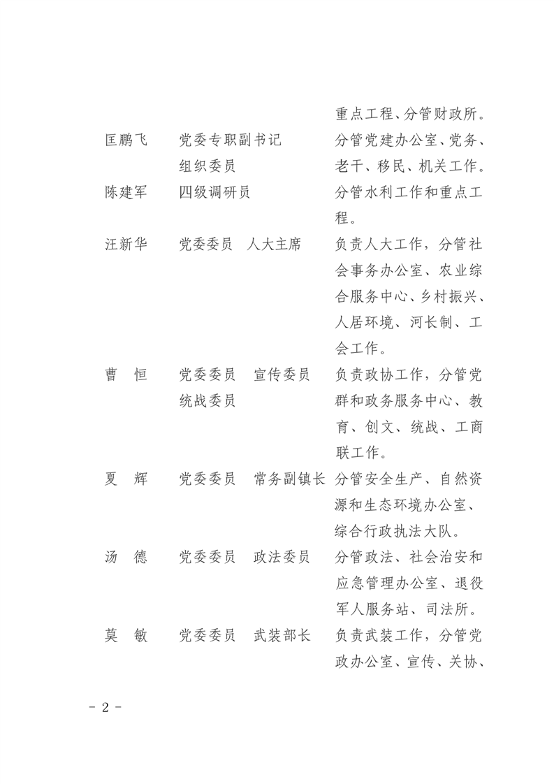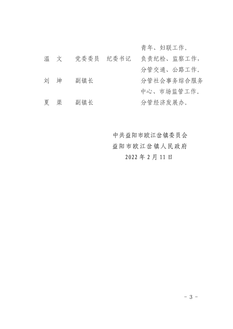 关于调整欧江岔镇党政领导班子成员 职务分工的通知