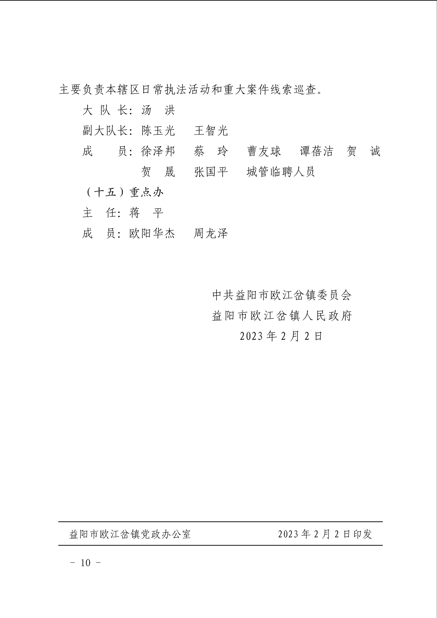 2023年欧江岔镇人民政府关于明确领导包片、干部办点、机关工作机构和事业站办所人员安排的通知