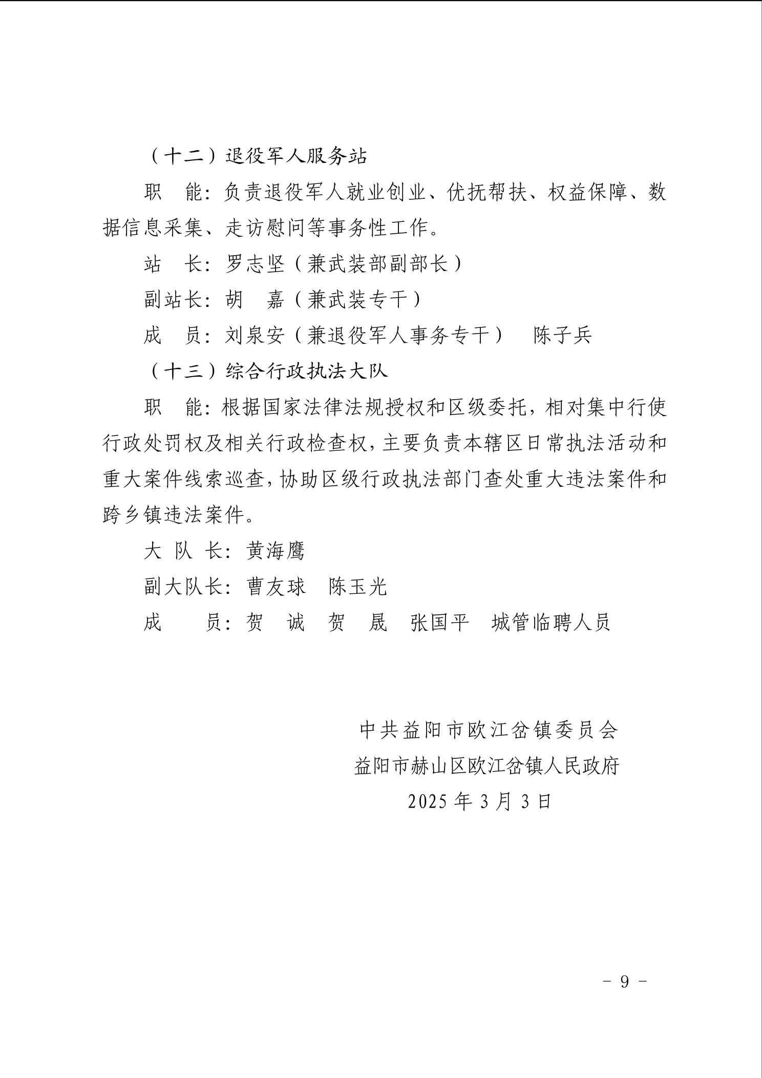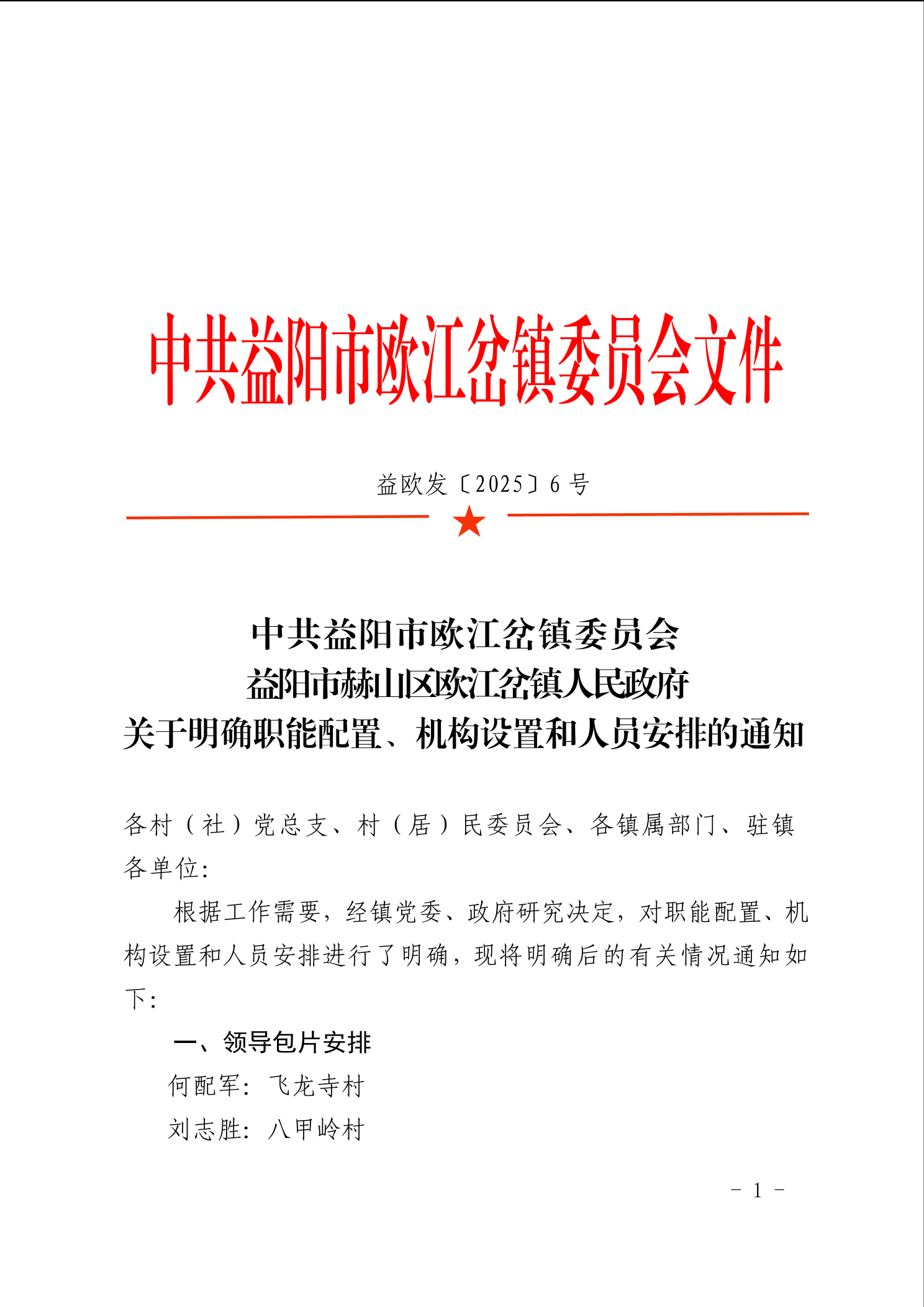 2025年益阳市赫山区欧江岔镇人民政府关于明确职能配置、机构设置和人员安排的通知