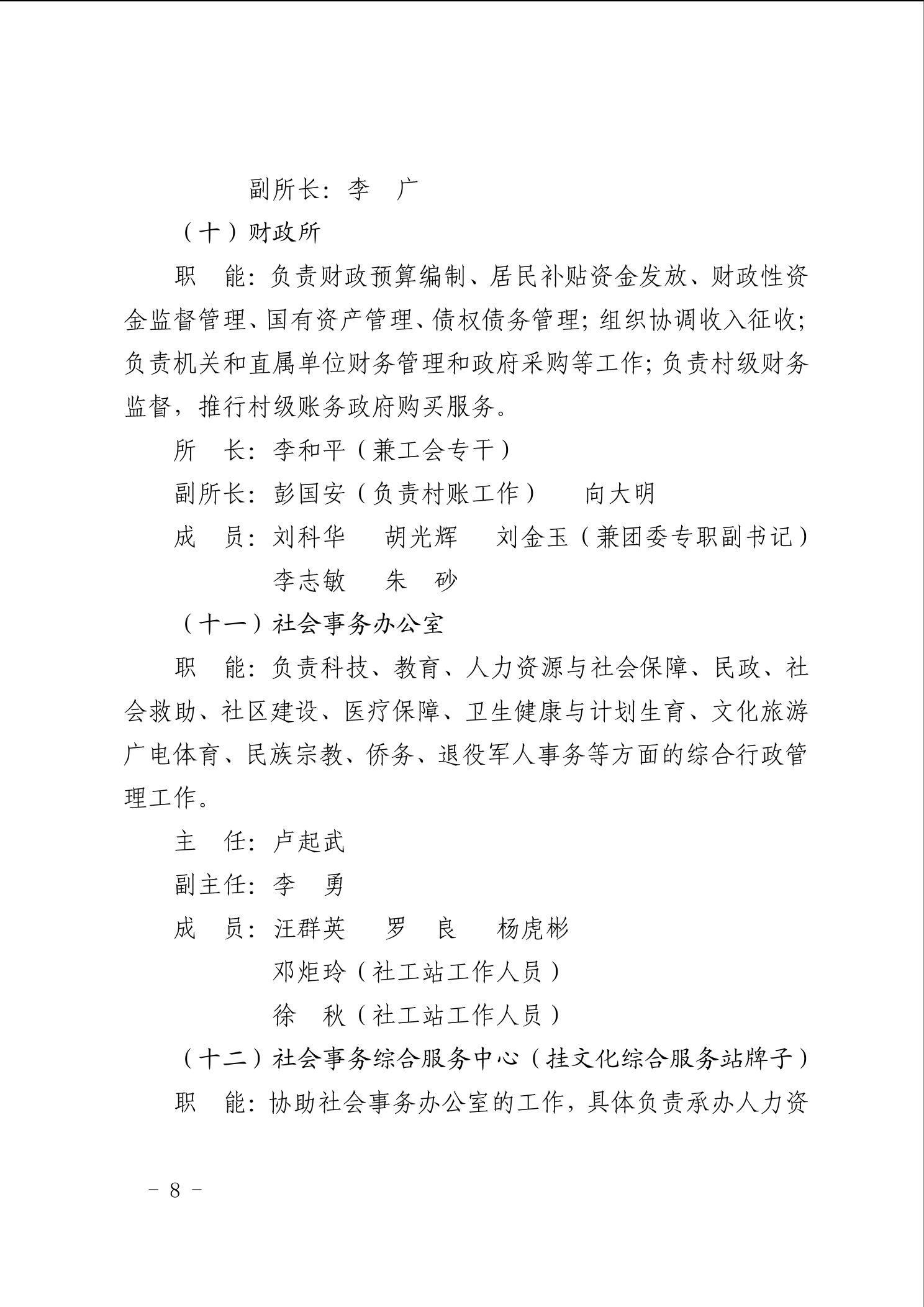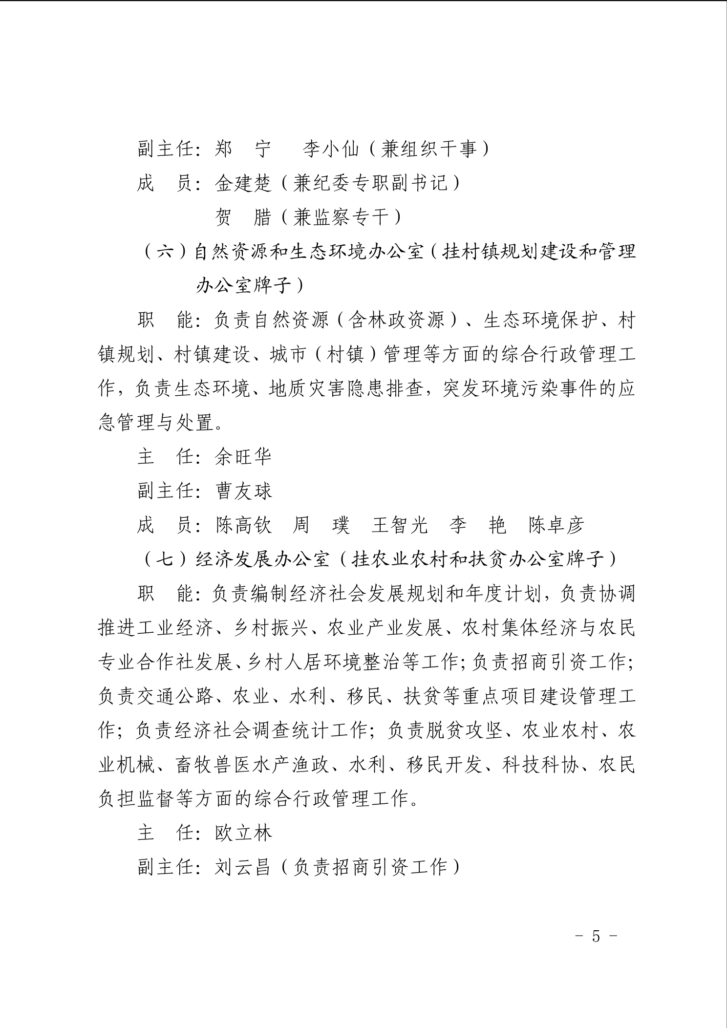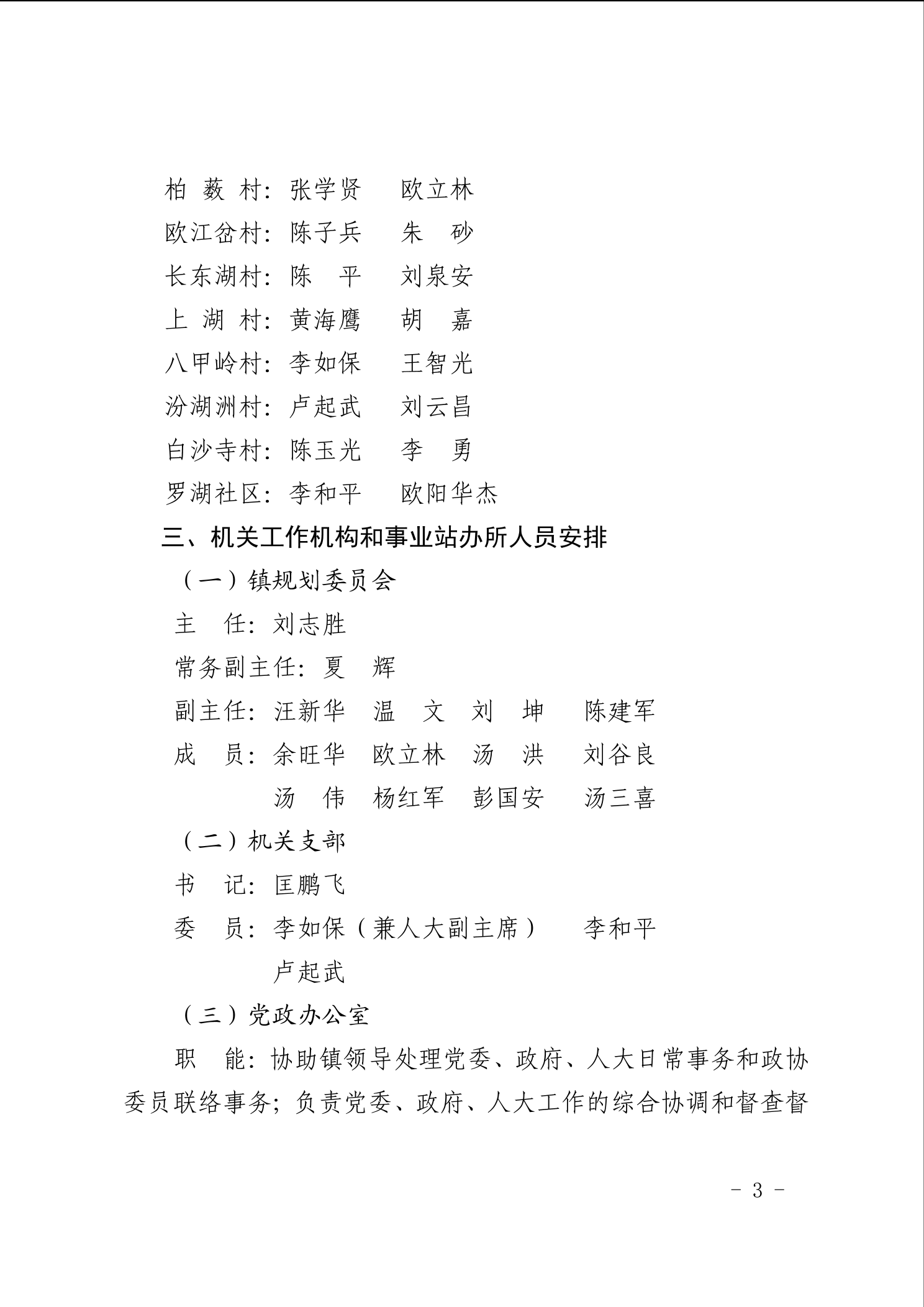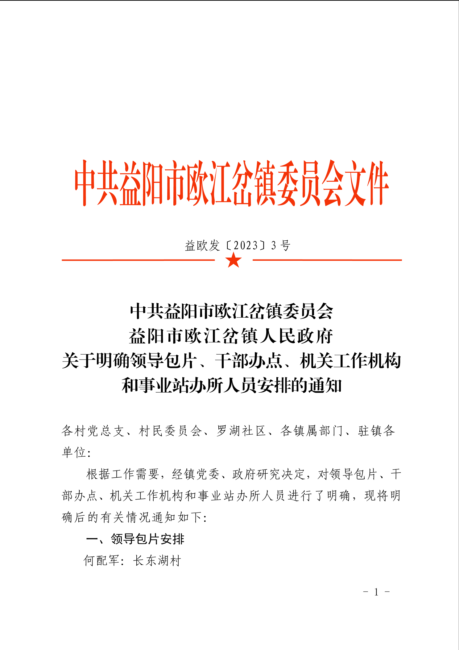 2023年欧江岔镇人民政府关于明确领导包片、干部办点、机关工作机构和事业站办所人员安排的通知