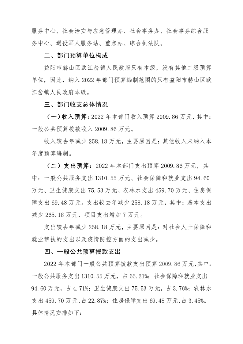 益阳市欧江岔镇人民政府2022年部门预算公开