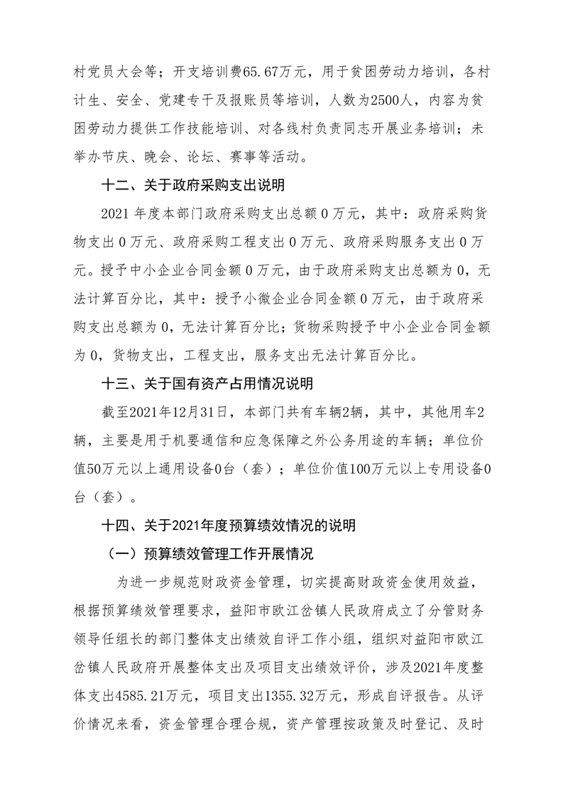 益阳市赫山区欧江岔镇人民政府2021年度部门整体支出绩效评价报告.docx