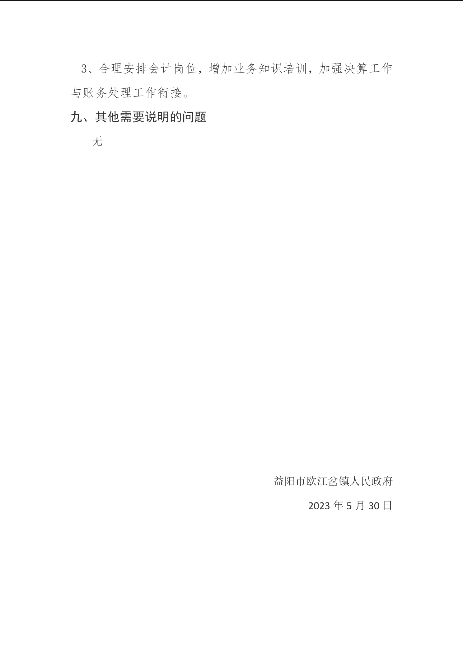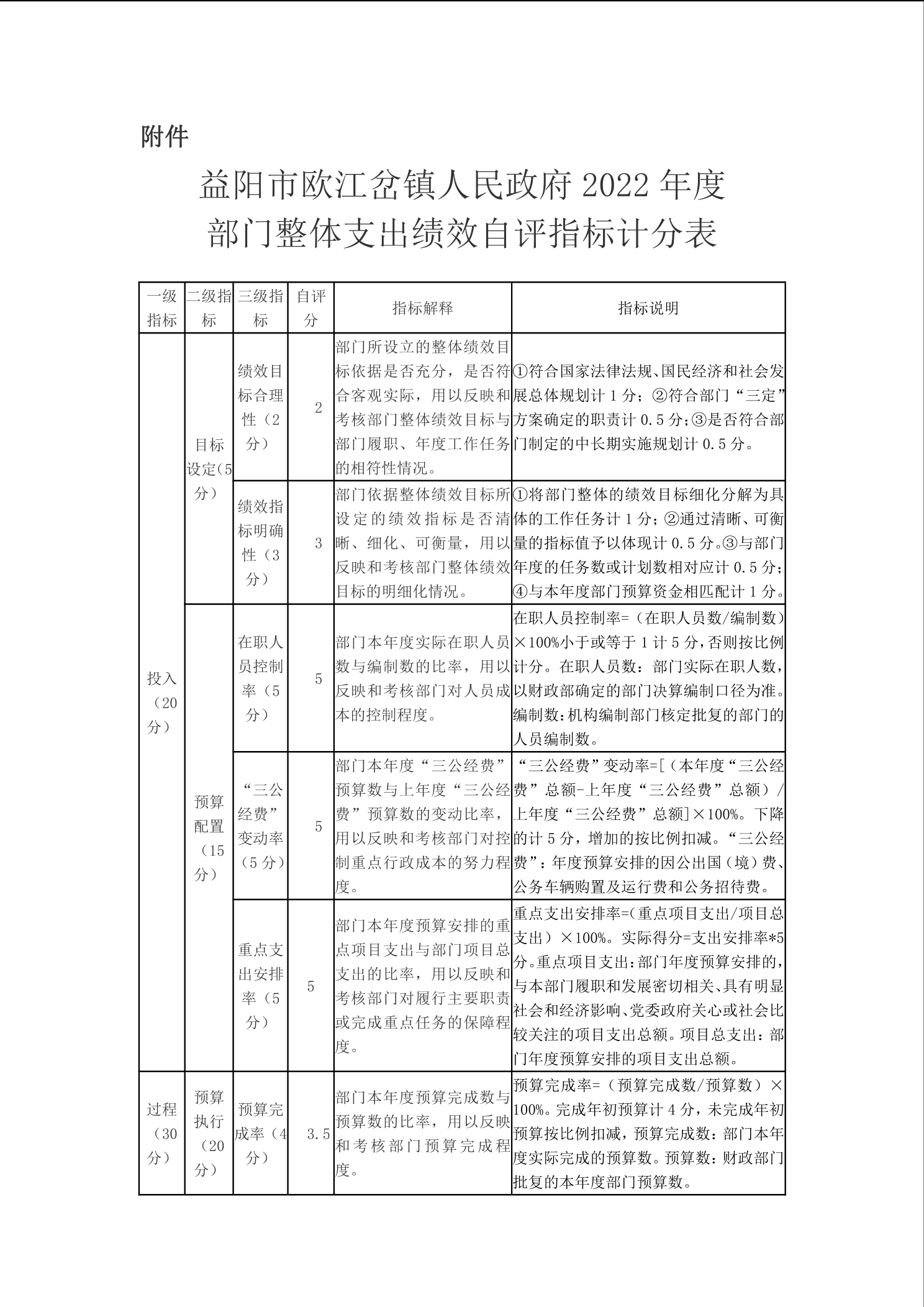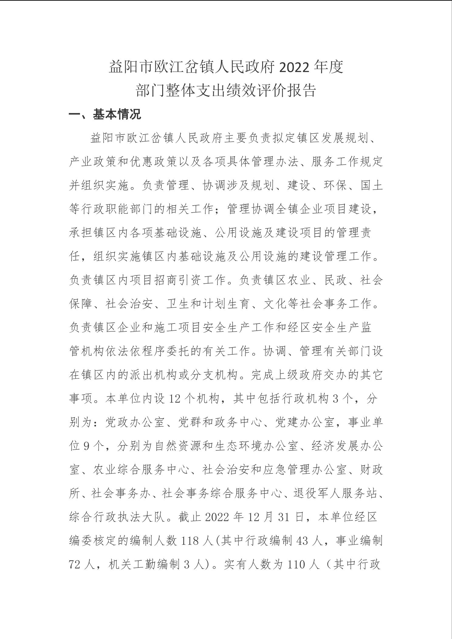 益阳市欧江岔镇人民政府2022年度 部门整体支出绩效评价报告