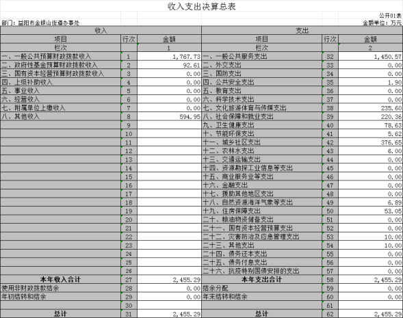 2022年度收入总计2455.29万元,与上年相比减少12.46万元,减少0.5%。支出总计2455.29万元,与上年相比减少12.46万元,减少0.5%。收入和支出减少的主要原因是抗疫特别国债资金减少。