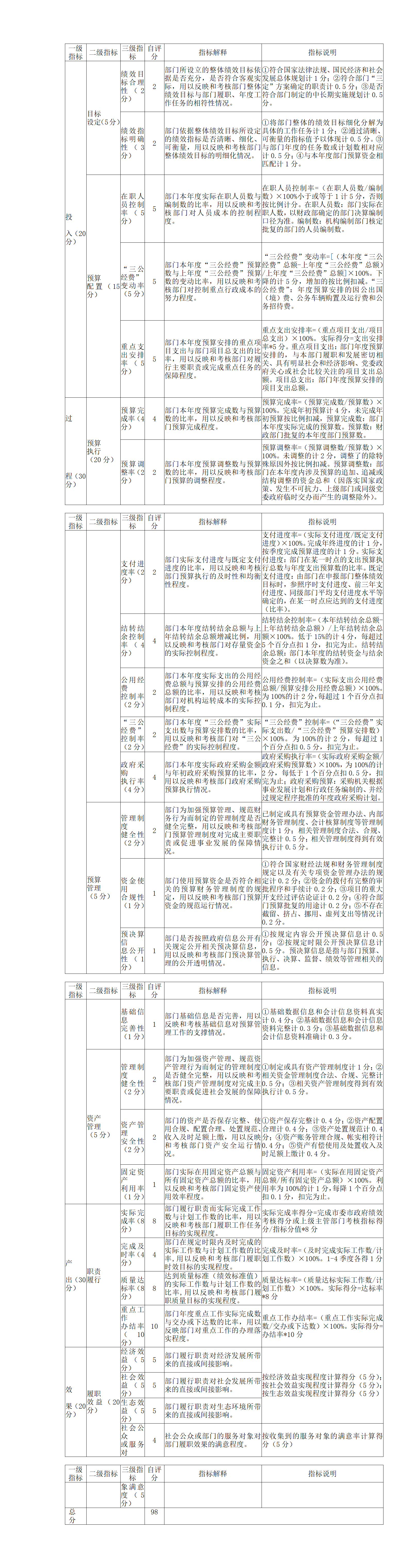 2020年度部门整体支出绩效自评指标计分表