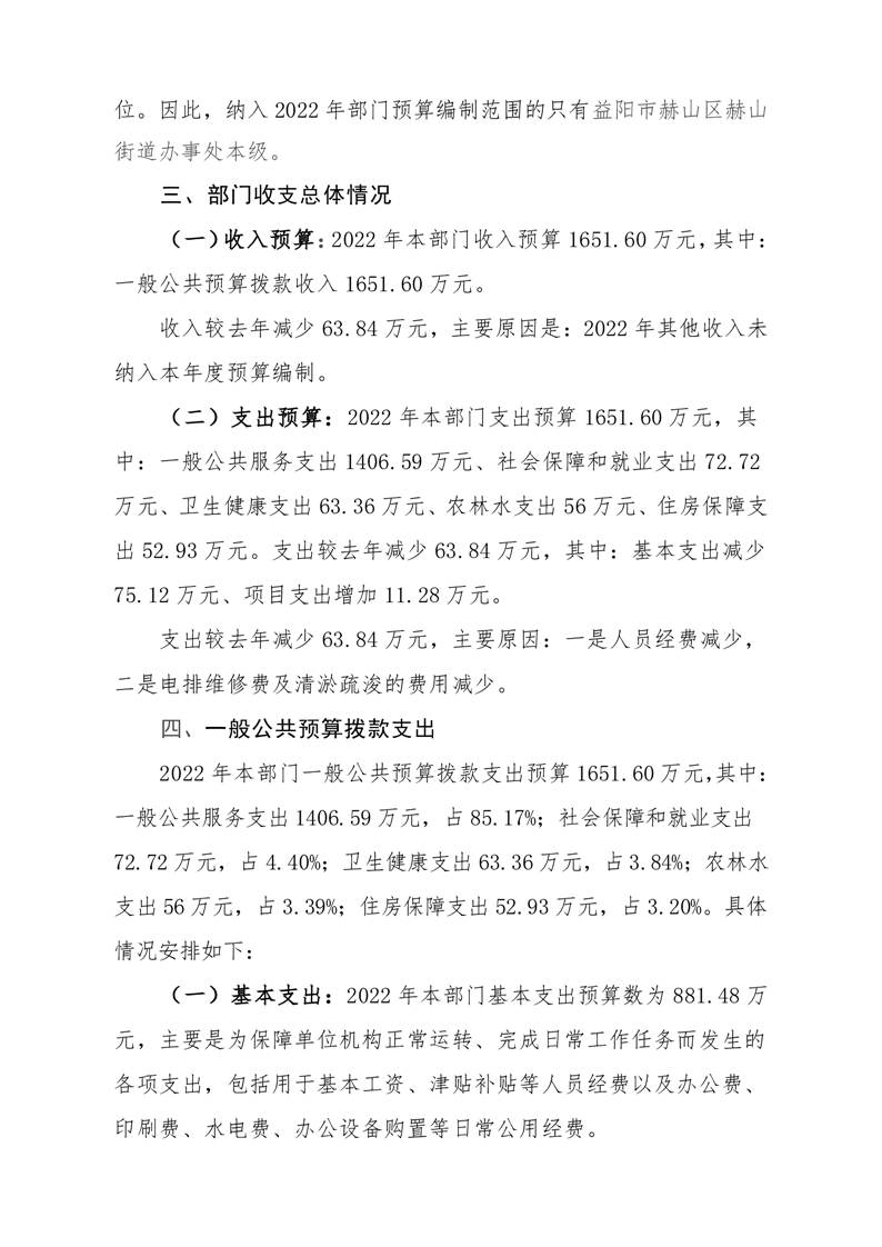 益阳市赫山区赫山街道办事处2022年部门预算公开