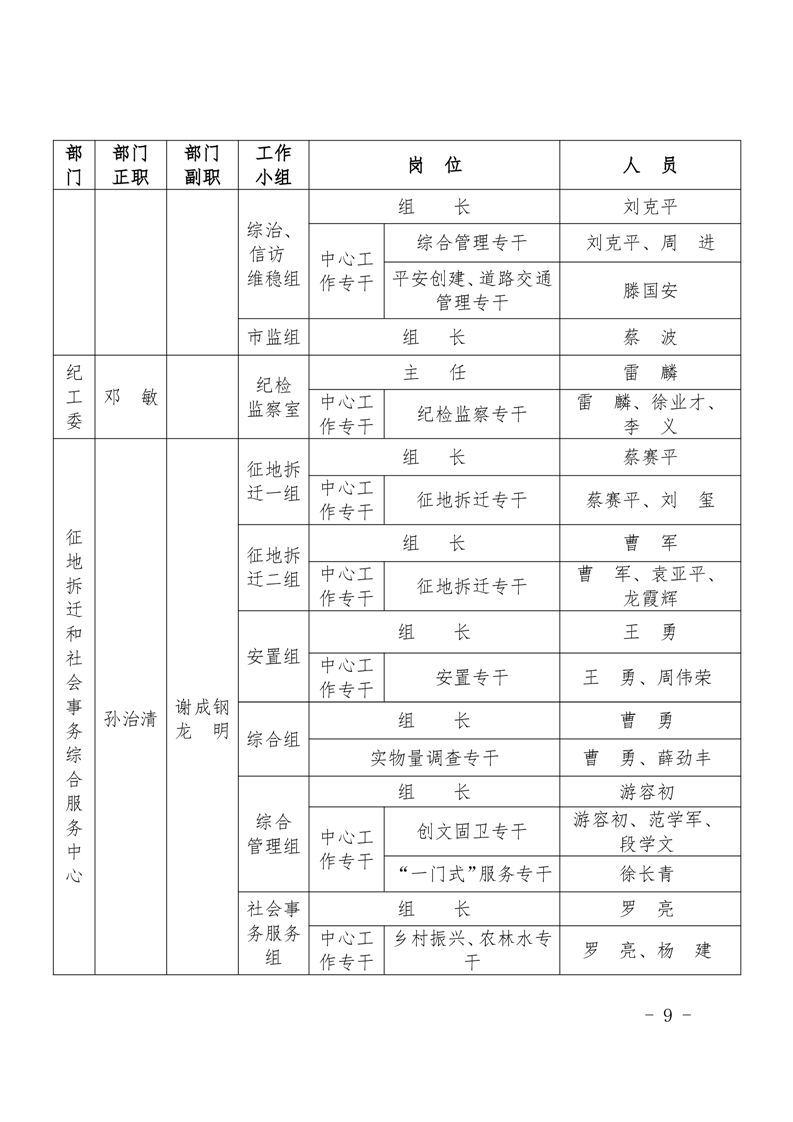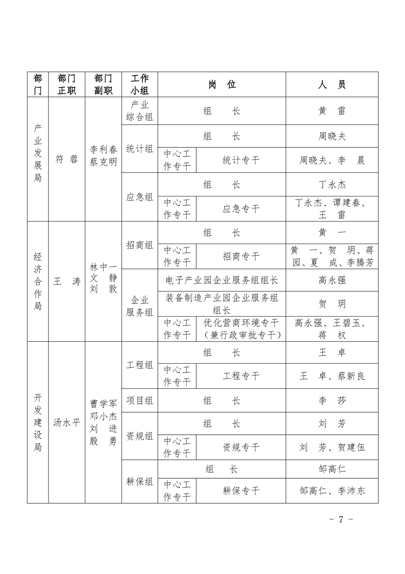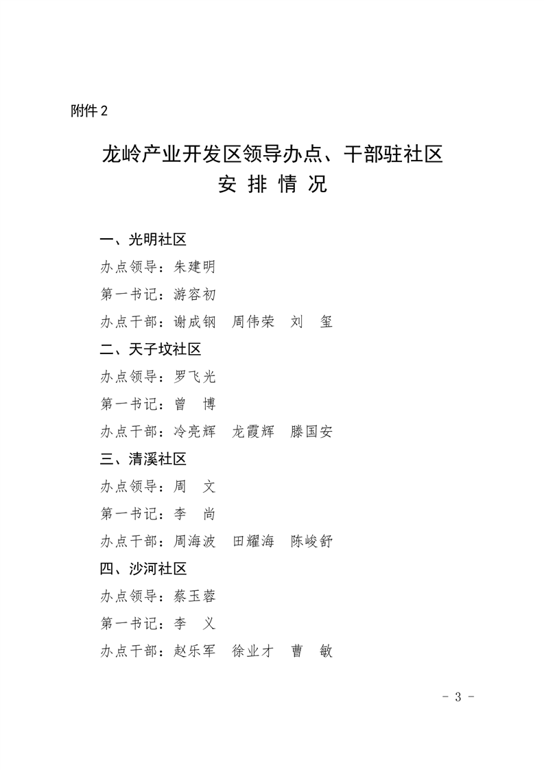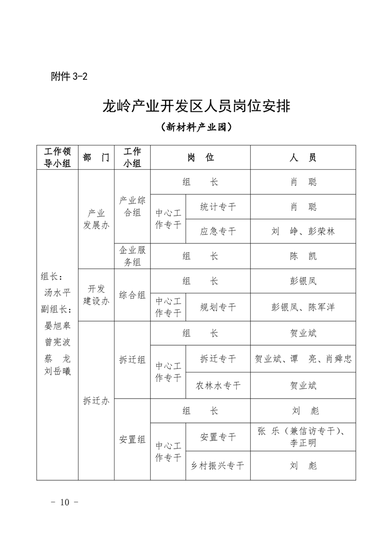 2024年3月关于明确龙岭产业开发区班子成员分工办点及人员岗位安排的通知