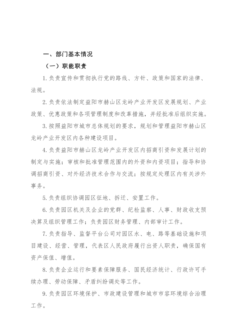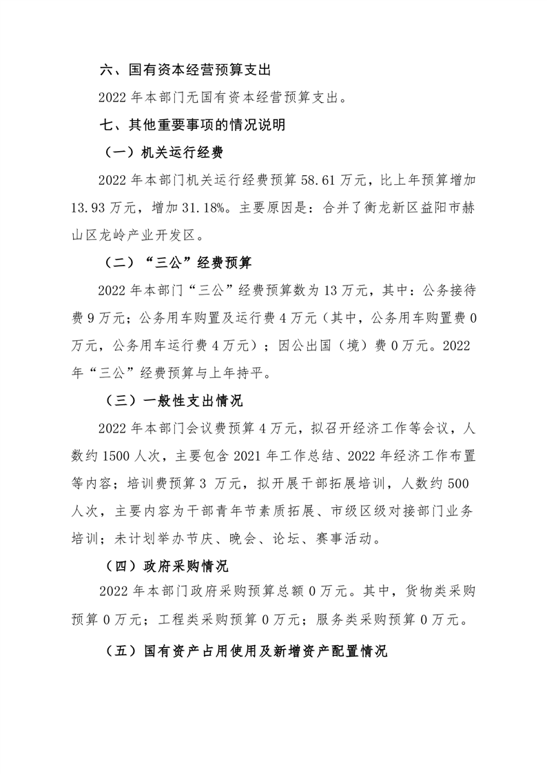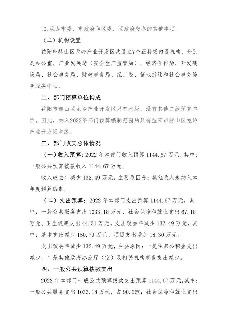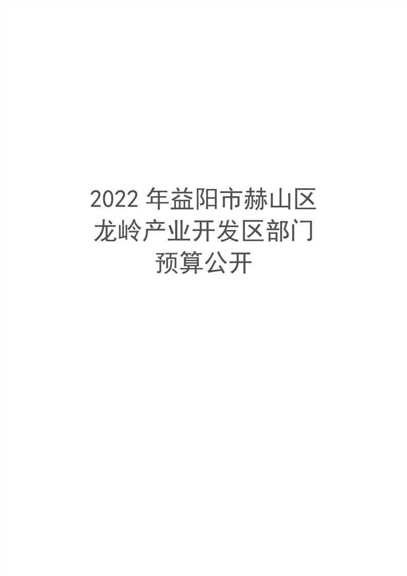 益阳龙岭工业集中区管理委员会 2022年部门预算公开