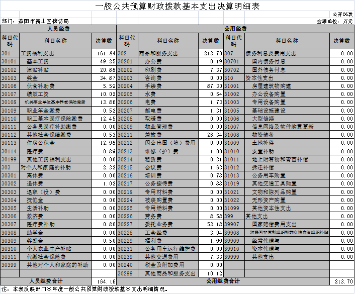 公用经费213.70万元,占基本支出的56.44%,主要包括办公费、水费、邮电费、物业管理费、差旅费、维修(护)费、租赁费、会议费、培训费、公务接待费、专用材料费、劳务费、工会经费、福利费、其他交通费用、其他商品与服务支出。