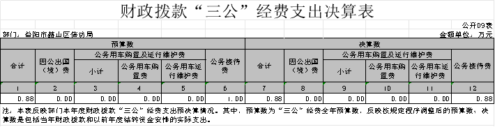 因公出国(境)费支出预算为0万元,支出决算为0万元,完成预算100%。公务接待费支出预算为1万元,支出决算为0.88万元,完成预算的88%,决算数小于预算数的主要原因是:认真贯彻落实中央八项规定精神和厉行节约要求,从严控制“三公”经费开支,全年支出比上年有所压减。