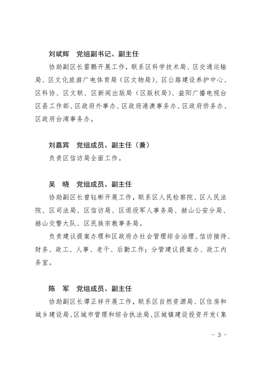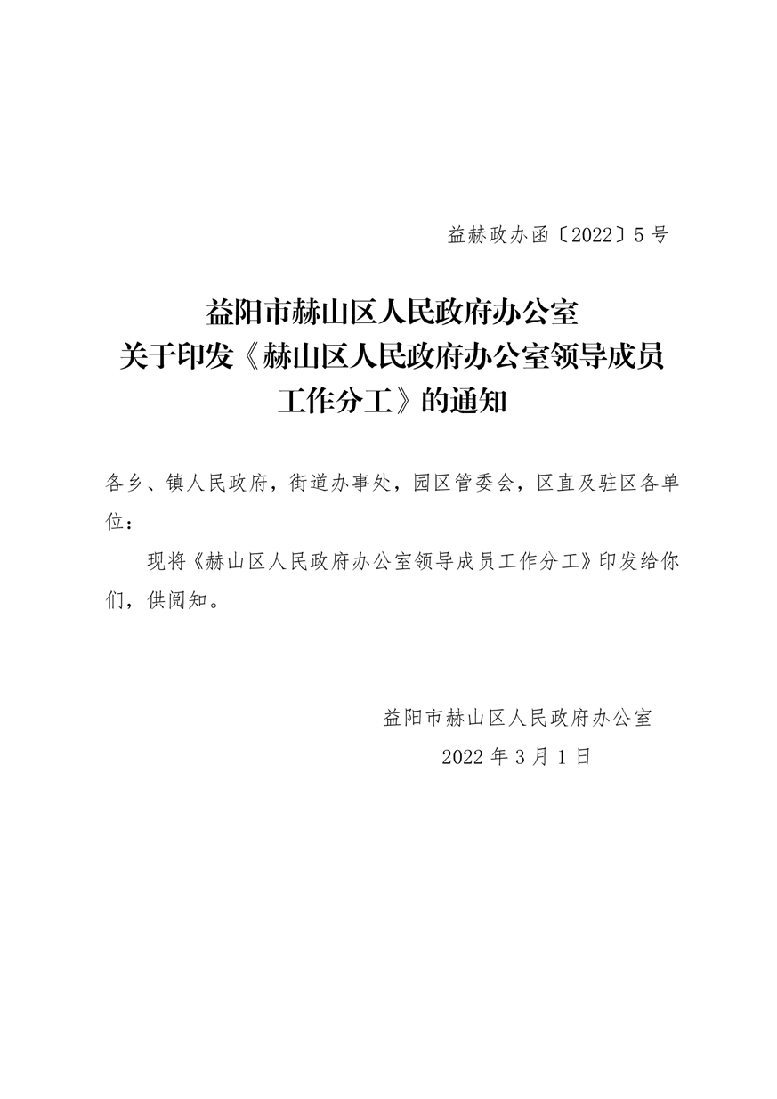 益阳市赫山区人民政府办公室关于印发《赫山区人民政府办公室领导成员工作分工》的通知(2022年)