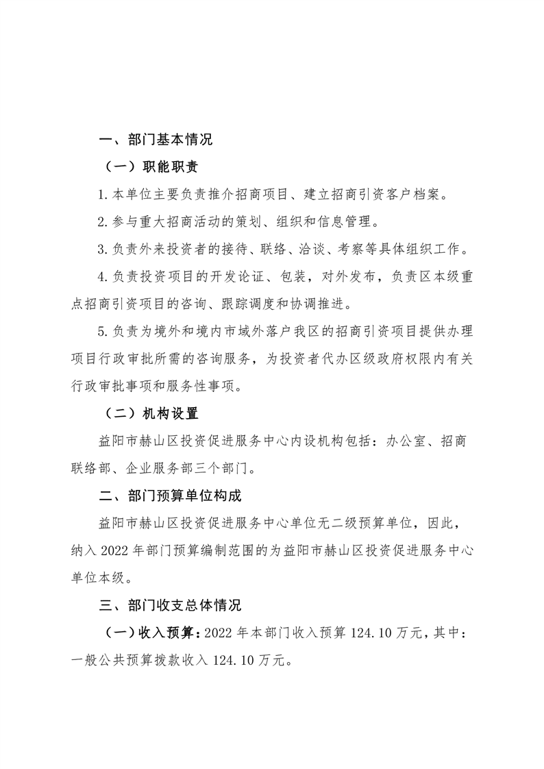 2022年赫山区投资促进服务中心部门预算说明
