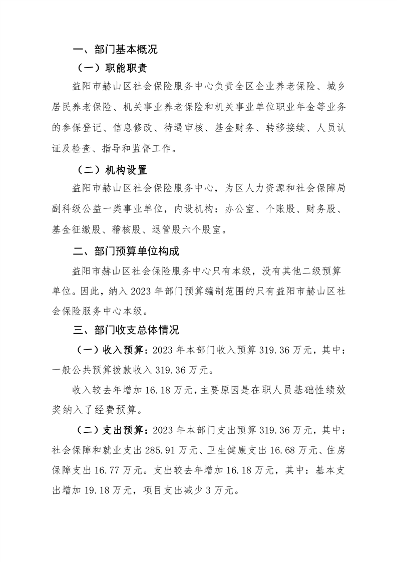 益阳市赫山区社会保险服务中心 2023年部门预算公开