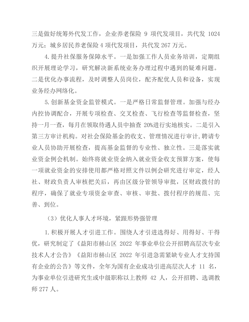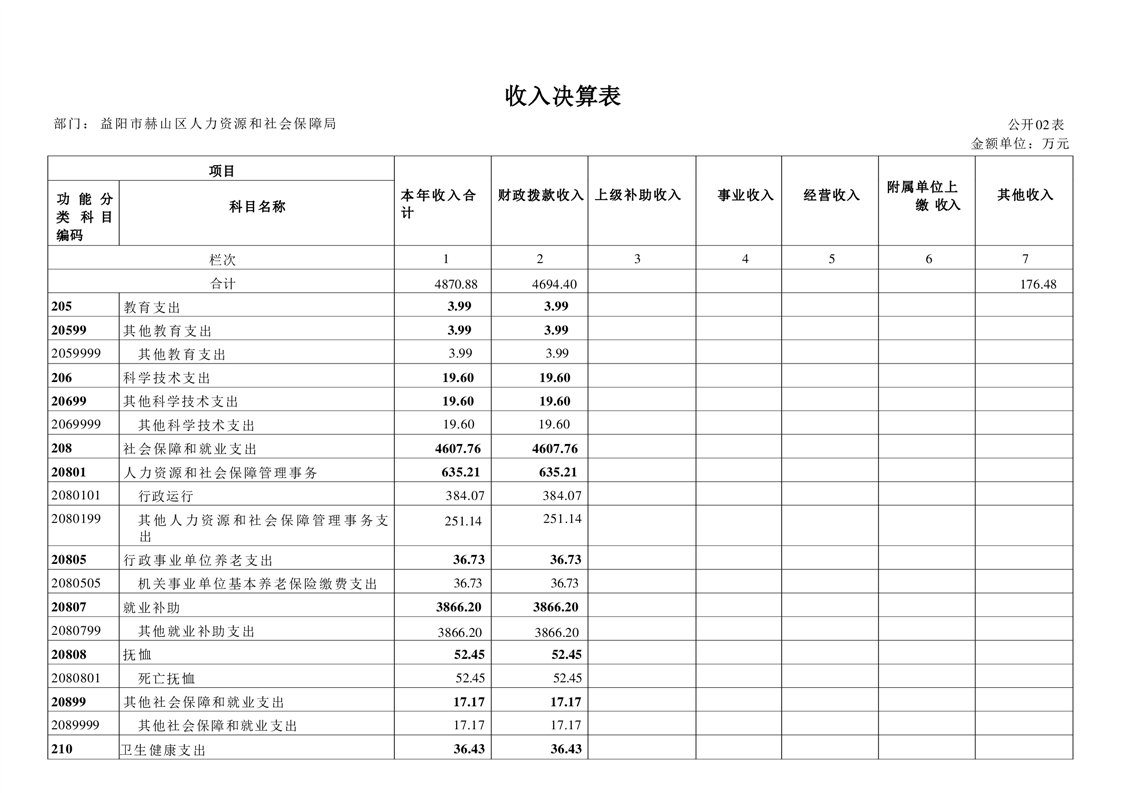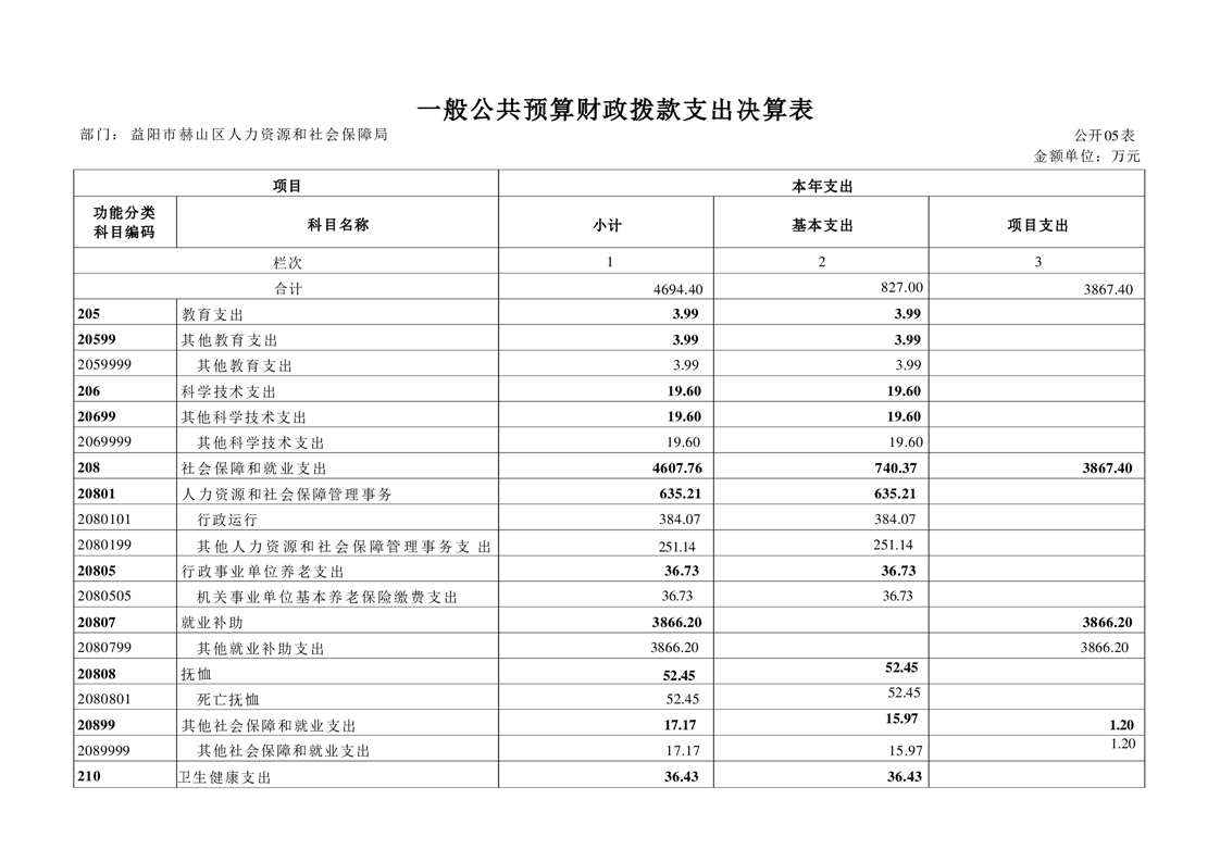 益阳市赫山区人力资源和社会保障局2022年度部门决算公开