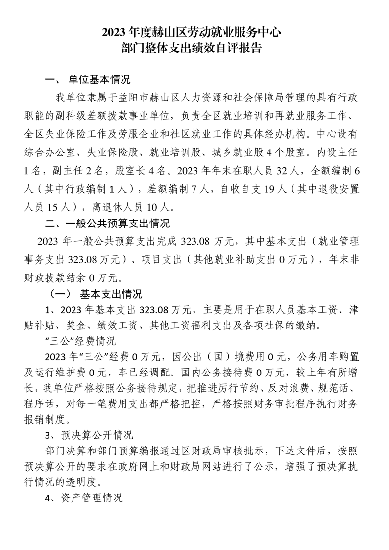 2023年度益阳市赫山区劳动就业服务中心部门决算
