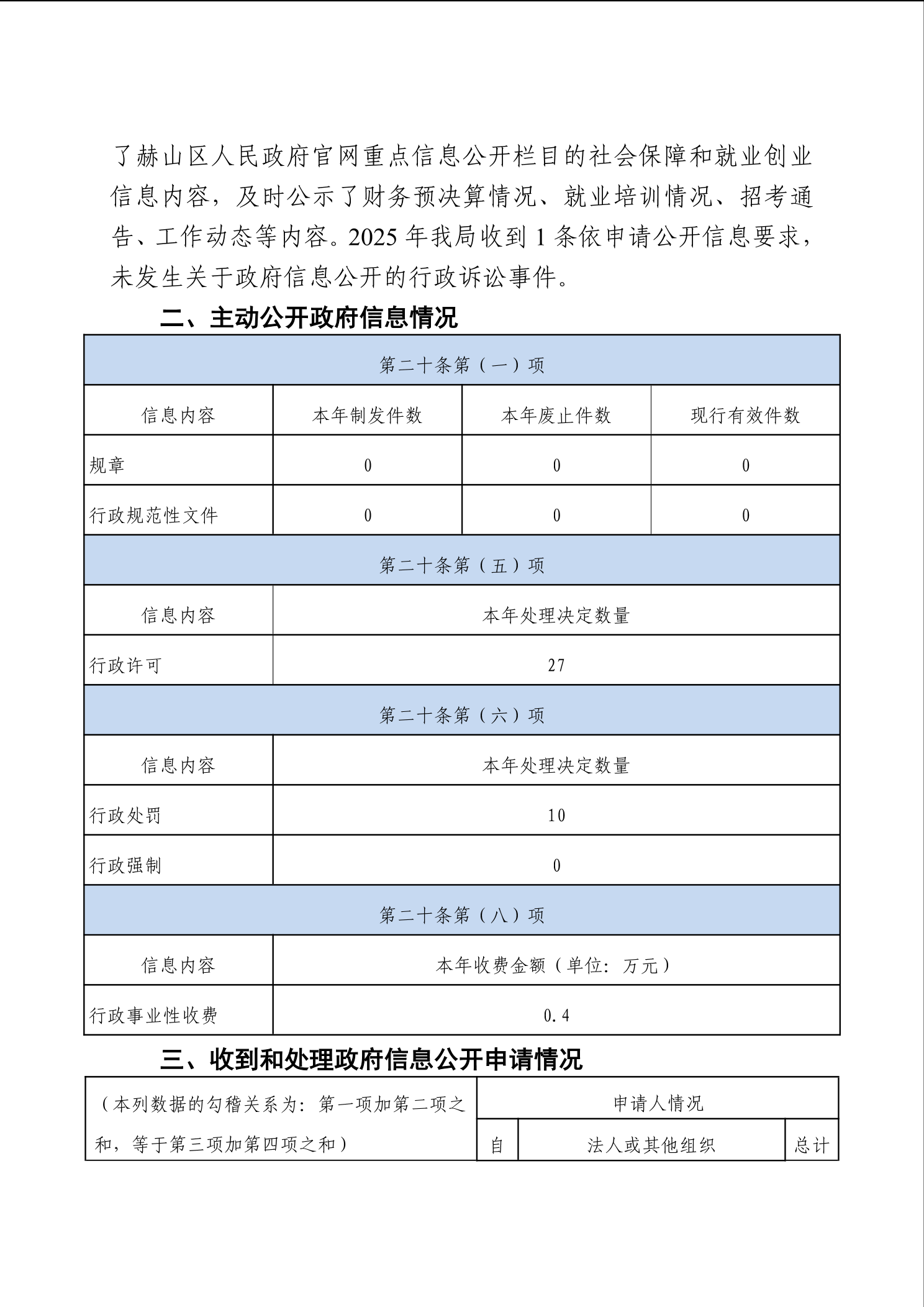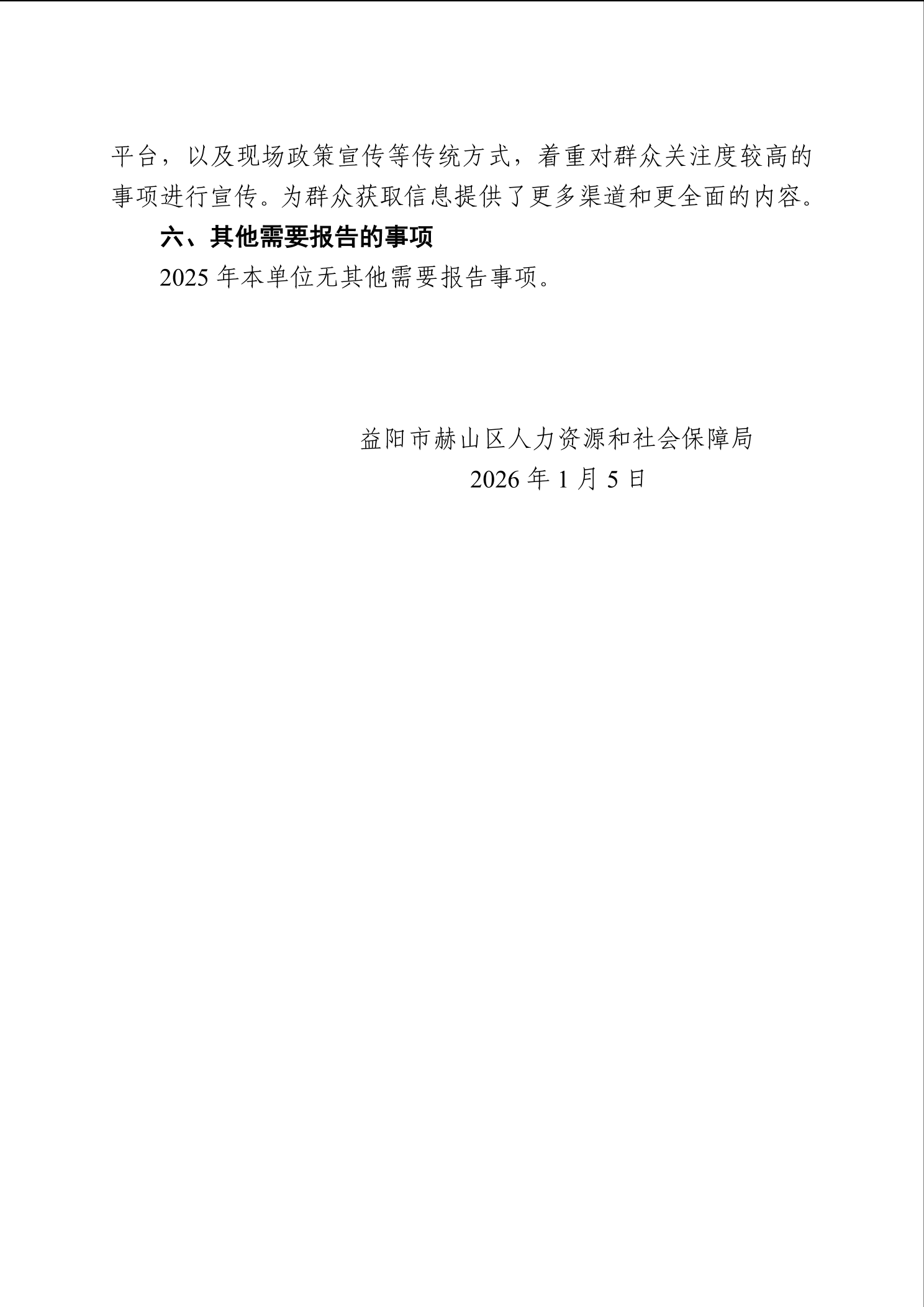 益阳市赫山区人力资源和社会保障局政府信息公开工作2025年度报告